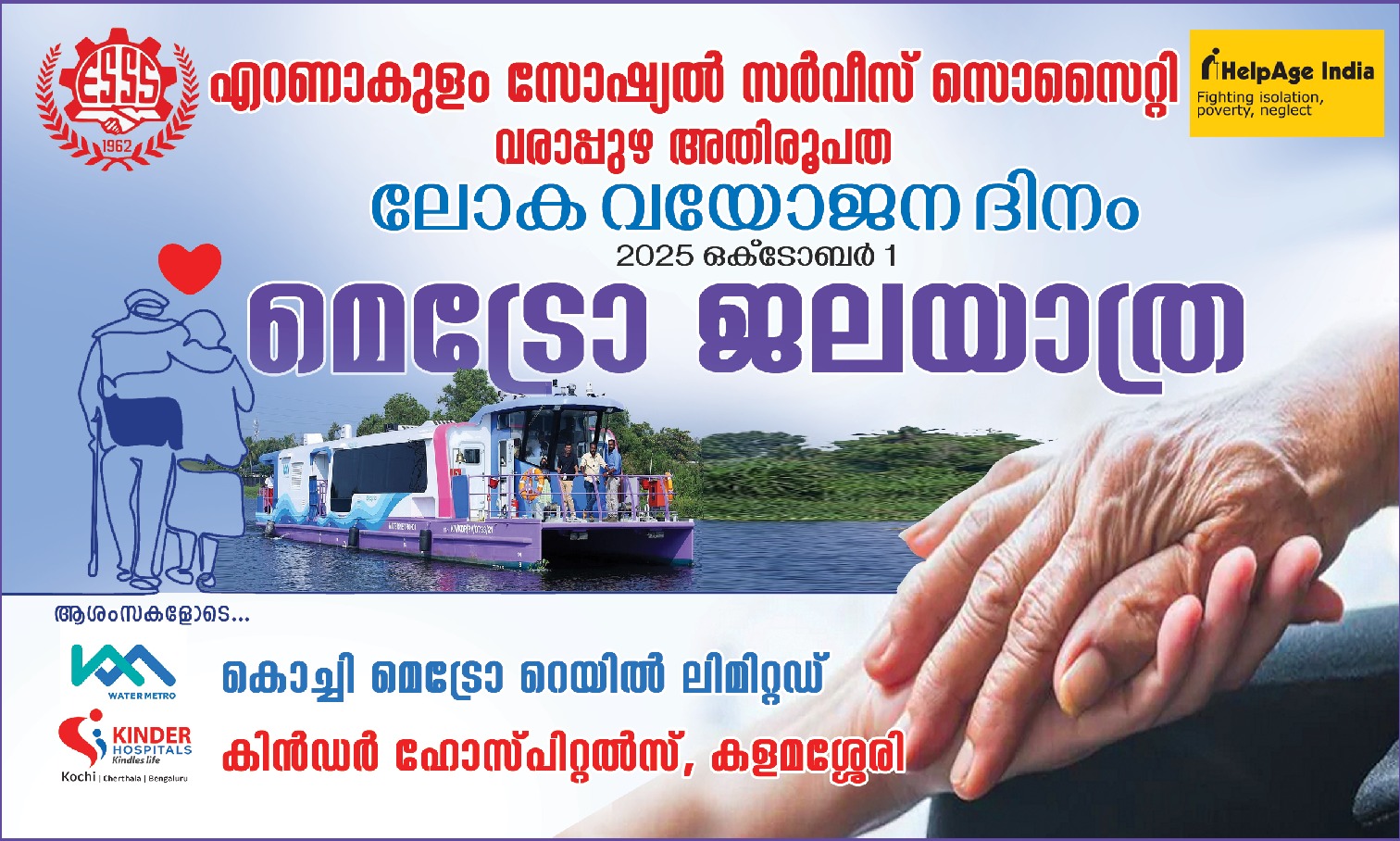 വയോജനങ്ങൾക്കായി മെട്രോ ജലയാത്ര നടത്തി എറണാകുളം :കൊച്ചി മെട്രോ റെയിൽ ലിമിറ്റഡും വരാപ്പുഴ അതിരൂപതയുടെ സാമൂഹിക സേവന വിഭാഗമായ ...