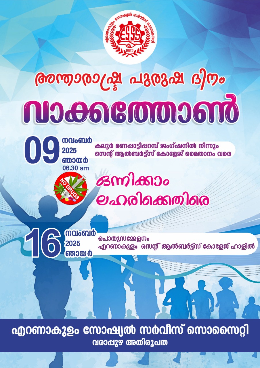 വരാപ്പുഴ അതിരൂപതയുടെ സാമൂഹിക സേവന വിഭാഗമായ എറണാകുളം സോഷ്യൽ സർവീസ് സൊസൈറ്റി ലഹരിക്കെതിരെ വോക്കത്തോൺ സംഘടിപ്പിച്ചു. പുരുഷ സ്വയം സഹായ സംഘങ്ങളിൽ നിന്നുള്ള പ്രതിനിധികൾ മണപ്പാട്ടി പറമ്പിൽ നിന്ന് സെൻ്റ് ആൽബർട്സ് കോളേജ് ഗ്രൗണ്ടിലേക്ക് നടത്തിയ വാക്കത്തോൺ ഇ എസ് . എസ്. എസ് ഡയറക്ടർ ഫാ. സിജൻ മണു വേലി പറമ്പിൽ ഫ്ലാഗ് ഓഫ് ചെയ്തു. ലഹരിക്കെതിരെ പ്രതിജ്ഞയും, കായിക, വിനോദ മത്സരങ്ങളും നടന്നു.