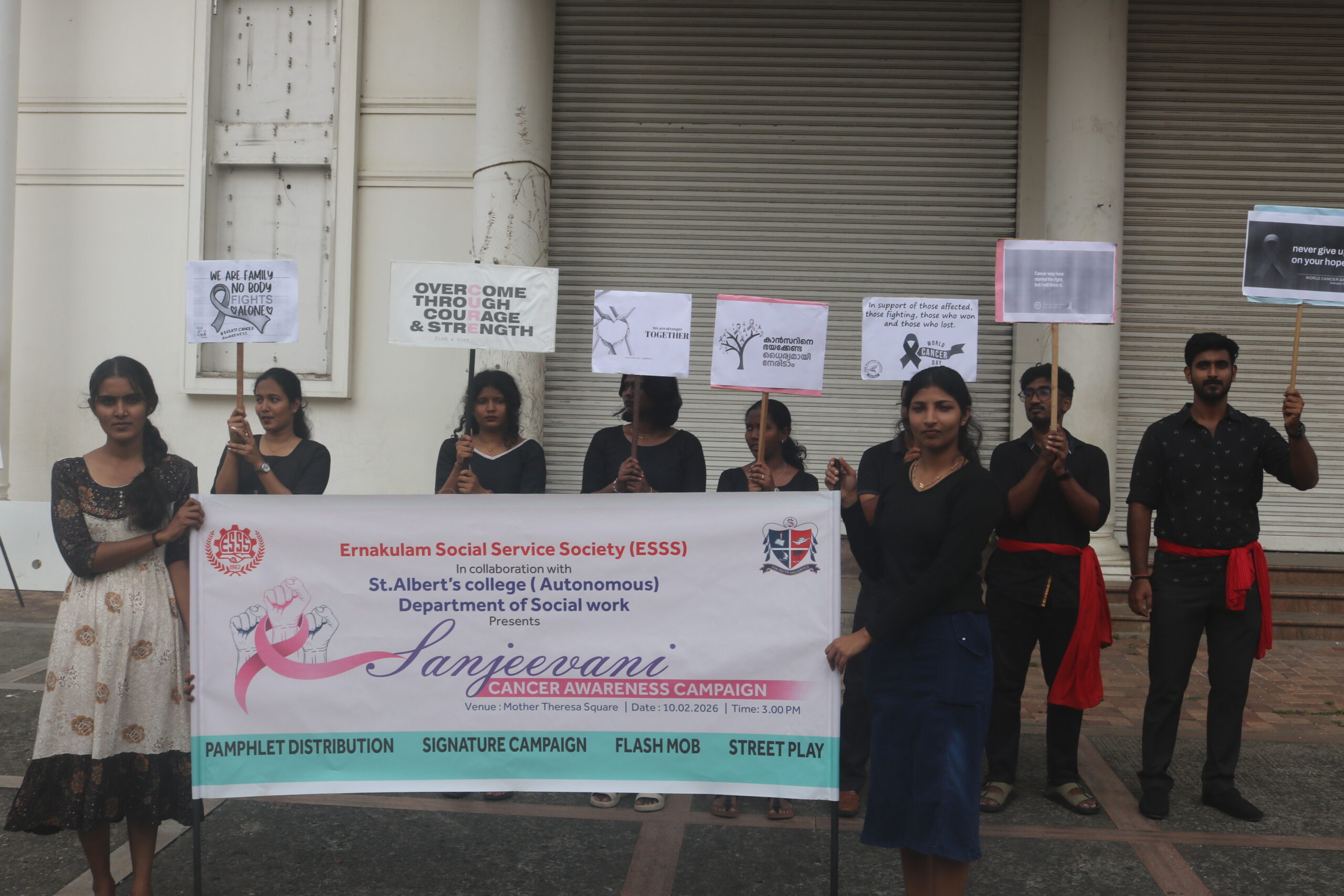 വരാപ്പുഴ അതിരൂപതയുടെ സാമൂഹിക സേവന വിഭാഗമായ എറണാകുളം സോഷ്യൽ സർവീസ് സൊസൈറ്റിയും എറണാകുളം സെൻ്റ് ആൽബർട്ട്സ് കോളേജിലെ സോഷ്യൽ വർക്ക് ഡിപ്പാർട്ട്മെൻ്റും സംയുക്തമായി ലോക കാൻസർ ദിനാചരണത്തിൻ്റെ ഭാഗമായി കാൻസർ ബോധവത്കരണ ക്യാമ്പയിൻ സംഘടിപ്പിച്ചു. എറണാകുളം ഹൈക്കോർട്ടിന് സമീപത്തുള്ള മദർ തെരേസ സ്ക്വയറിൽ നടന്ന ചടങ്ങിൽ എറണാകുളം സോഷ്യൽ സർവ്വീസ് സൊസൈറ്റി ഡയറക്ടർ റവ. ഡോ. ആൻ്റണി സിജൻ മണുവേലിപറമ്പിൽ ഉദ്ഘാടനകർമ്മം നിർവഹിച്ചു . സെൻ്റ് ആൽബർട്ട്സ് കോളേജ് സോഷ്യൽ വർക്ക് ഡിപ്പാർട്ട്മെൻ്റ് HOD ഡിനു സൈമൺ എല്ലാവരേയും സ്വാഗതം ചെയ്തു. പ്രസ്തുത പരിപാടിയുടെ ഭാഗമായി സെൻ്റ് ആൽബർട്ട്സ് കോളേജ് സോഷ്യൽ വർക്ക് വിഭാഗത്തിലെ ഒന്നാം വർഷ ബിരുദാനന്തര ബിരുദ വിദ്യാർത്ഥികൾ ഫ്ലാഷ് മോബ്, തെരുവ് നാടകം തുടങ്ങിയവ അവതരിപ്പിച്ചു. കാൻസർ എന്ന മഹാവിപത്തിനെ സമൂഹത്തിൽ നിന്നും തുടച്ചു മാറ്റുക എന്ന ലക്ഷ്യത്തോടെയാണ് വിവിധ പരിപാടികൾ സംഘടിപ്പിച്ചത്. തുടർന്ന് കാൻസർ രോഗലക്ഷണങ്ങൾ, മുൻകരുതലുകൾ, പ്രതിരോധ മാർഗ്ഗങ്ങൾ മുതലായവ അടങ്ങിയ ലീഫ് ലെറ്റ് ജനങ്ങൾക്ക് വിതരണം ചെയ്യുകയും പ്രസ്തുത പരിപാടിയോട് ഐക്യദാർഢ്യം പ്രഖ്യാപിച്ചുകൊണ്ട് അവർ വിരലടയാളം രേഖപ്പെടുത്തുകയും ചെയ്തു . തുടർന്ന് ഇ.എസ്.എസ്.എസ് അസി. ഡയറക്ടർ ഫാ. റോഷൻ റാഫേൽ നെയ്യ്ശേരി എല്ലാവർക്കും നന്ദി പറഞ്ഞു. ഇ.എസ്.എസ്.എസ് പ്രവർത്തകർ, കോളേജ് ടീച്ചിംഗ്, നോൺ ടീച്ചിംഗ് സ്റ്റാഫ്, സ്റ്റുഡൻ്റ്സ് എന്നിവർ പരിപാടിക്ക് നേതൃത്വം നൽകി.